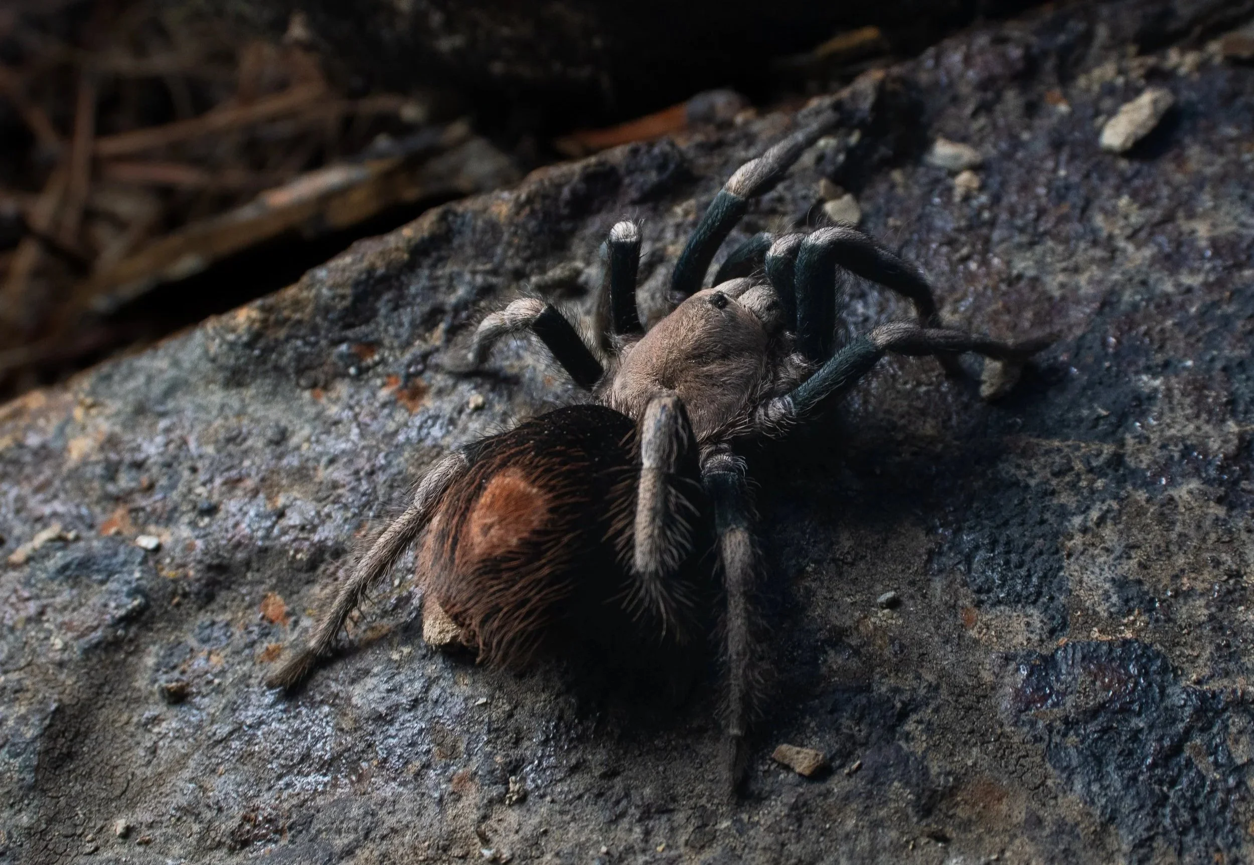 Then there is the cave species, Hemirrhagus sprousei. This one is especially cool because it is a blind troglobitic tarantula, meaning it lives in caves and has highly reduced eyes. Juveniles were found away from their retreats deep in the cave, well beyond the light-transition zone, and when disturbed they returned directly to their burrows without hesitation. That is hard to explain with vision, because vision is basically off the table.