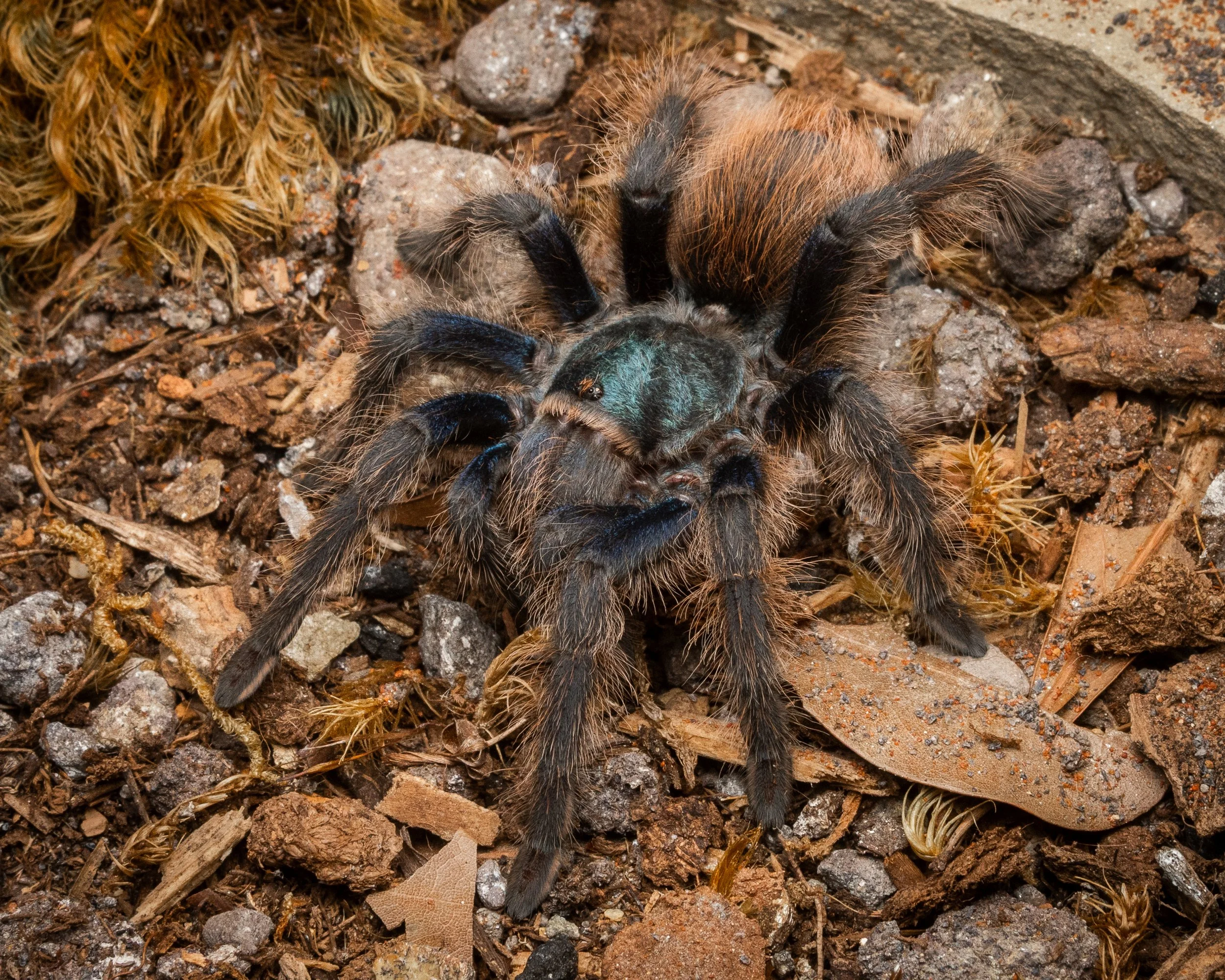 When the time comes, the tarantula rolls onto their back or side and begins the slow work of freeing themselves from the body they have outgrown.